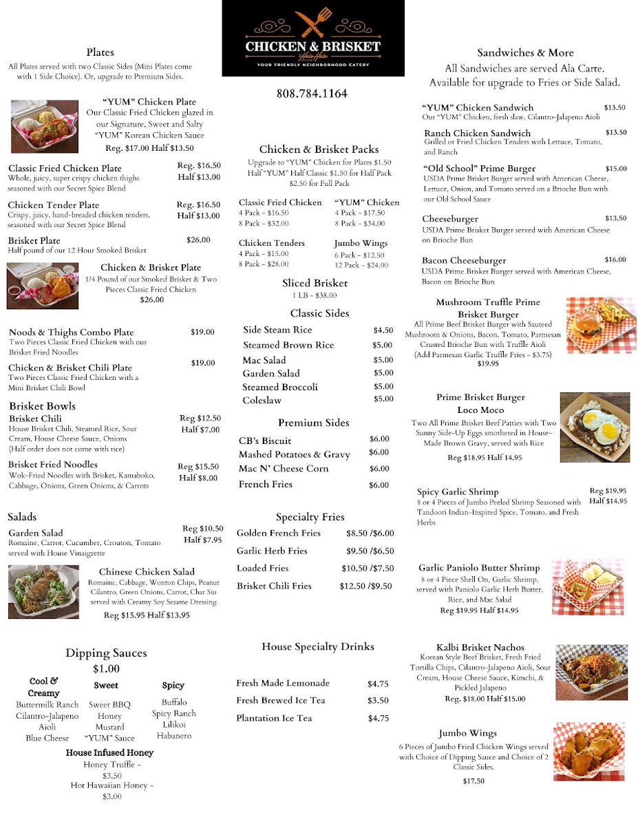 Welcome to Chicken & Brisket, a culinary gem located at 1000 Kamehameha Hwy in Pearl City, HI. This restaurant specializes in mouthwatering BBQ, with highlights including their tender brisket, which has garnered rave reviews for its amazing flavor and perfect tenderness.